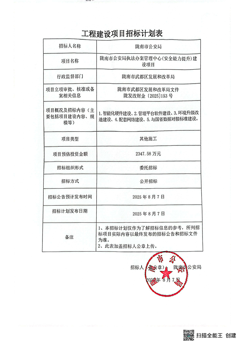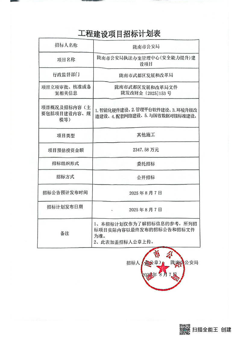 隴南市公安局執(zhí)法辦案管理中心(安全能力提升)建設(shè)項(xiàng)目