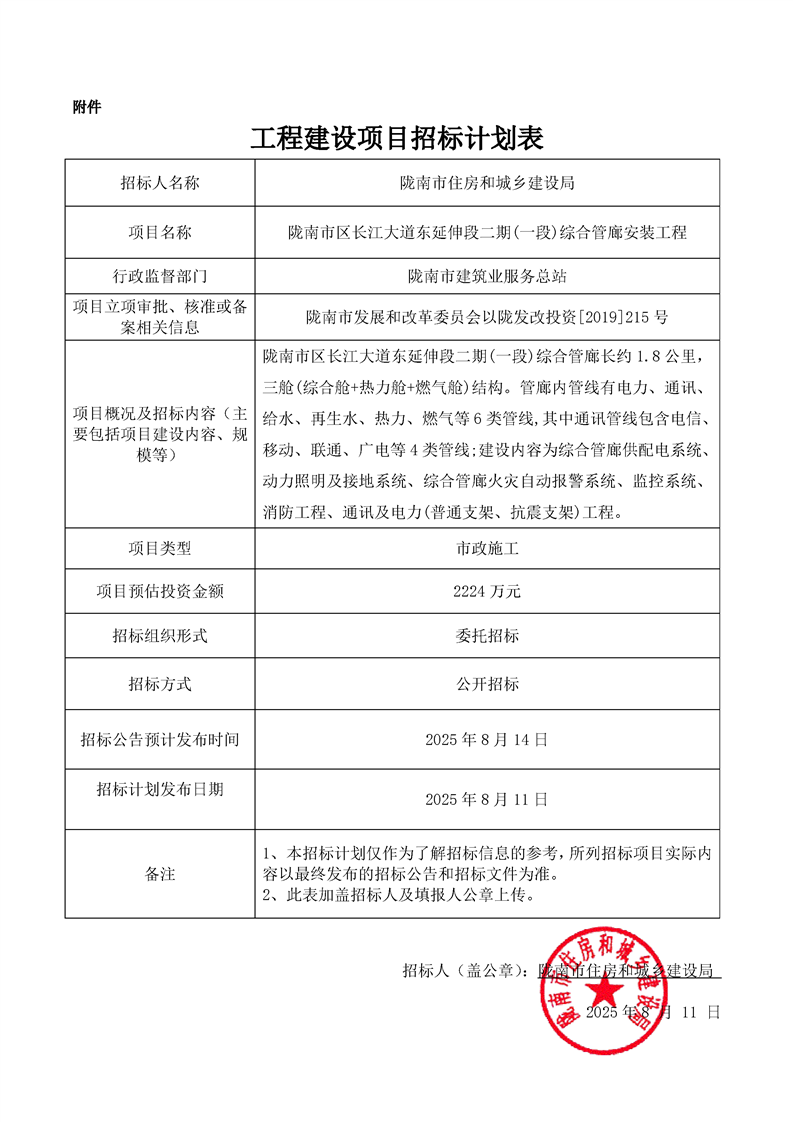 隴南市區(qū)長江大道東延伸段二期(一段)綜合管廊安裝工程工程建設(shè)項目招標計劃表.pdf