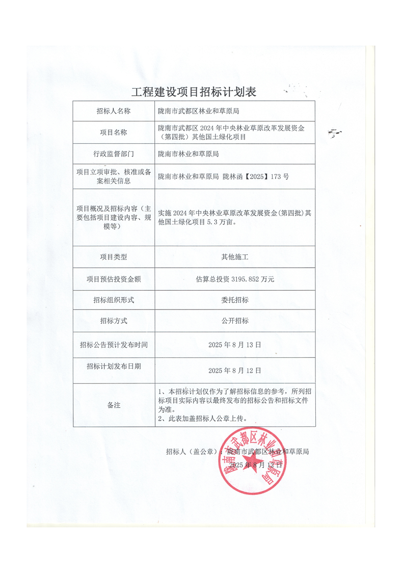 隴南市武都區(qū)2024年中央林業(yè)草原改革發(fā)展資金(第四批)其他國土綠化項(xiàng)目