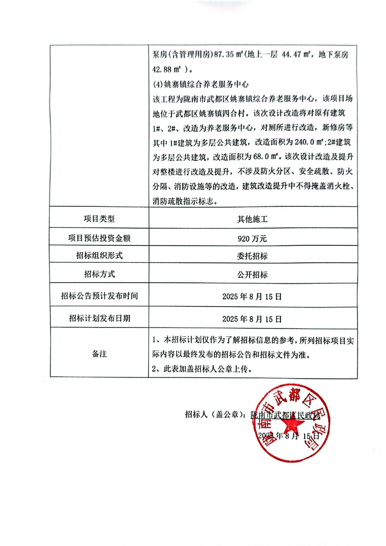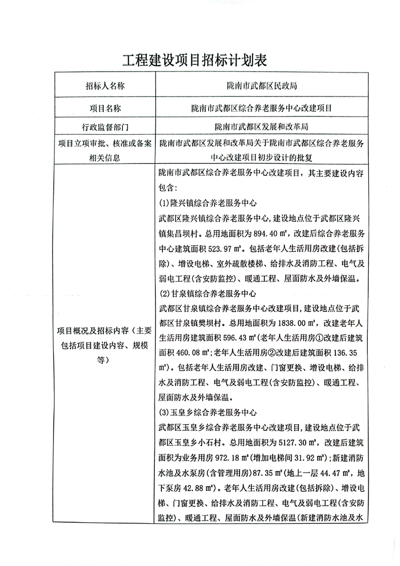 隴南市武都區(qū)綜合養(yǎng)老服務(wù)中心改建項(xiàng)目
