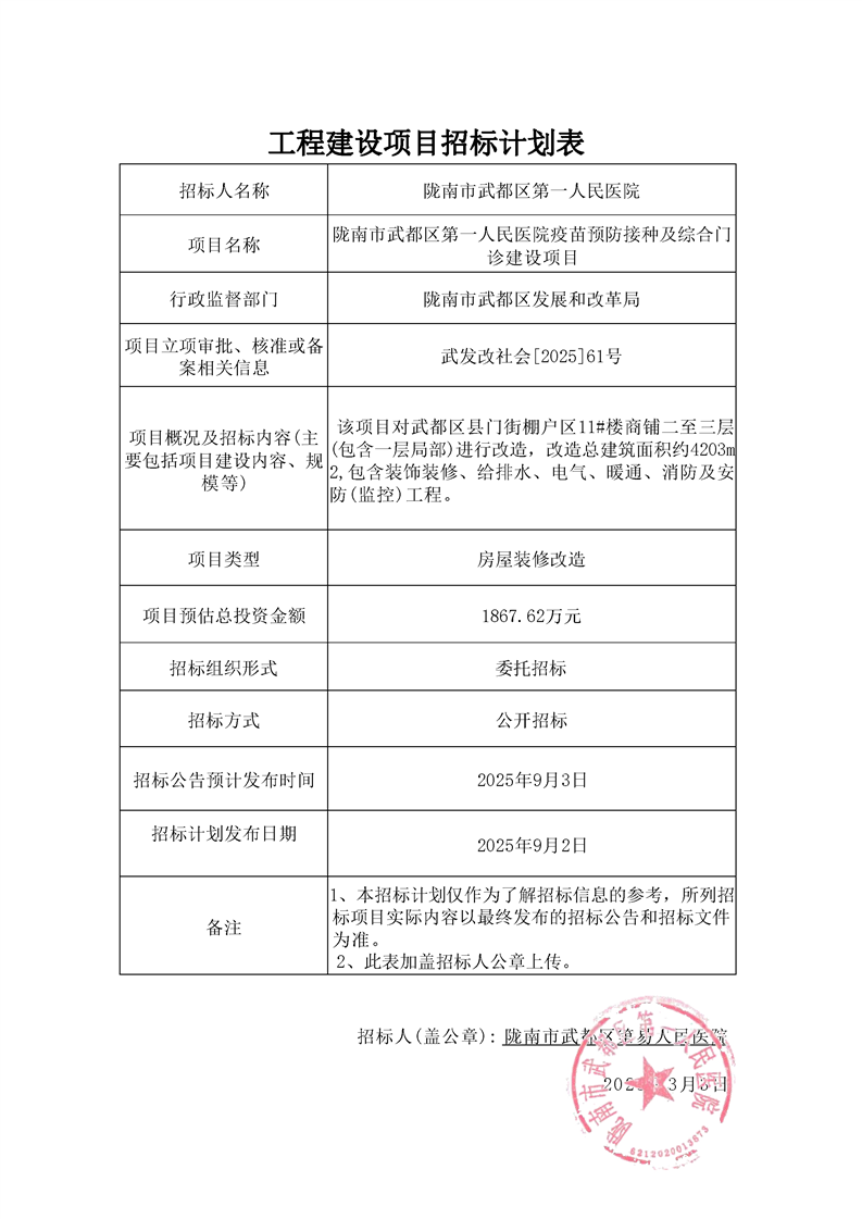 隴南市武都區(qū)第一人民醫(yī)院疫苗預(yù)防接種及綜合門診建設(shè)項(xiàng)目
