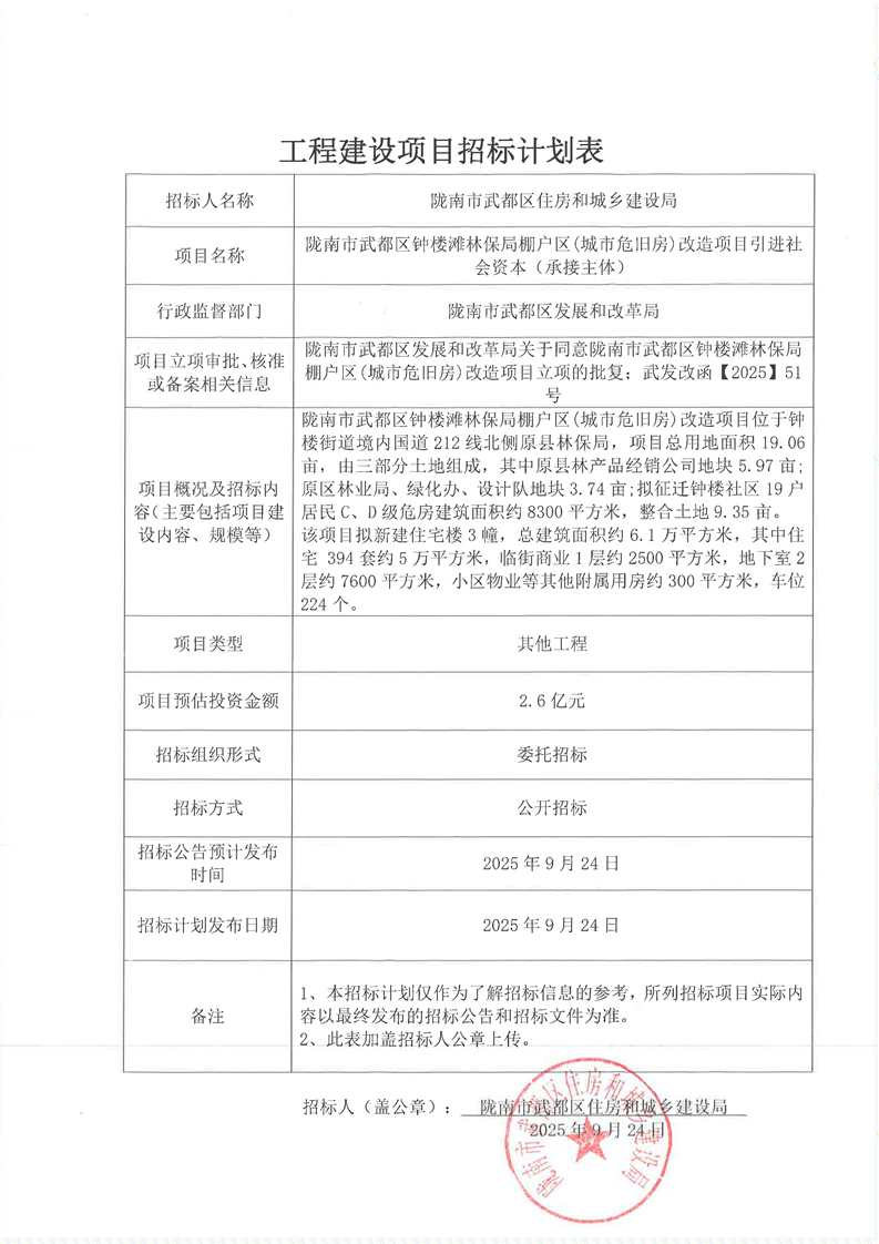 隴南市武都區(qū)鐘樓灘林保局棚戶區(qū)(城市危舊房)改造項(xiàng)目引進(jìn)社會(huì)資本(承接主體)