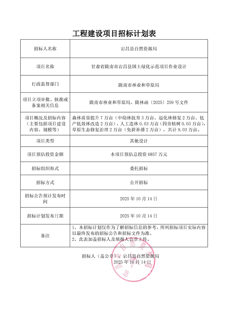 附件:工程建設(shè)項(xiàng)目招標(biāo)計(jì)劃表甘肅省隴南市宕昌縣國土綠化示范項(xiàng)目作業(yè)設(shè)計(jì).pdf