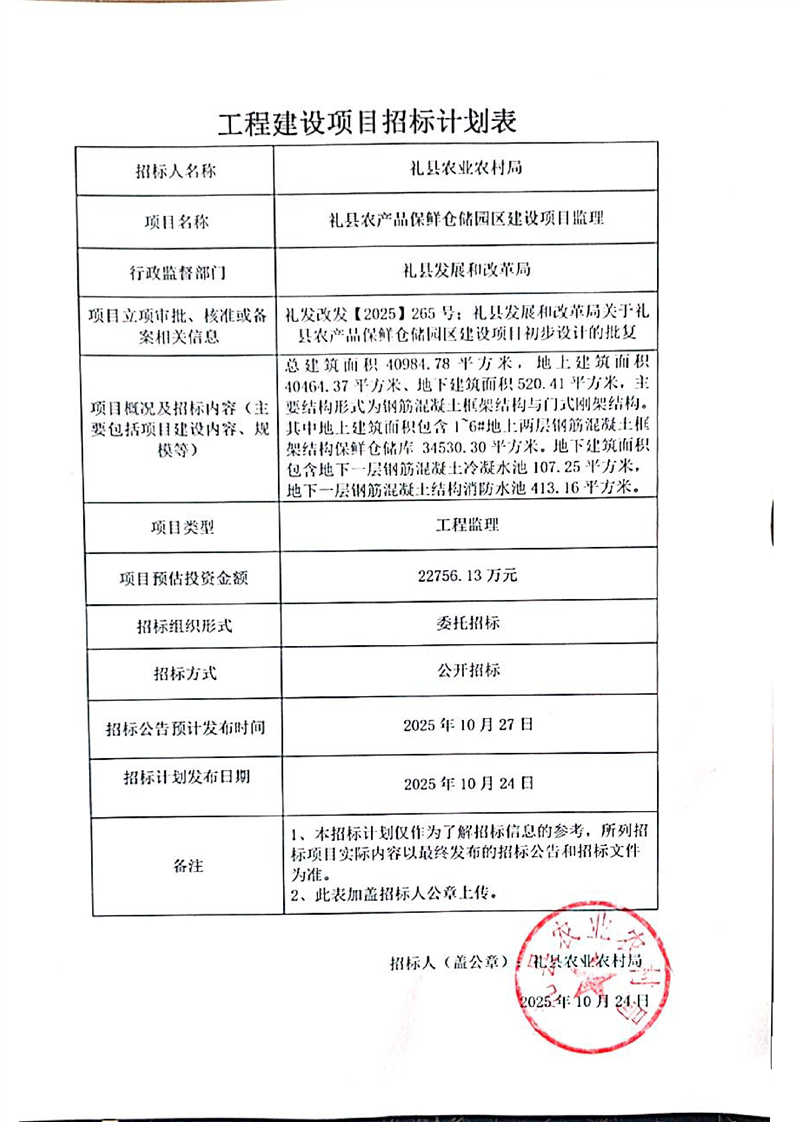 禮縣農(nóng)產(chǎn)品保鮮倉儲(chǔ)園區(qū)建設(shè)項(xiàng)目監(jiān)理