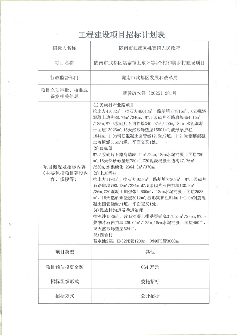 隴南市武都區(qū)姚寨鎮(zhèn)上東坪等4個村和美鄉(xiāng)村建設項目