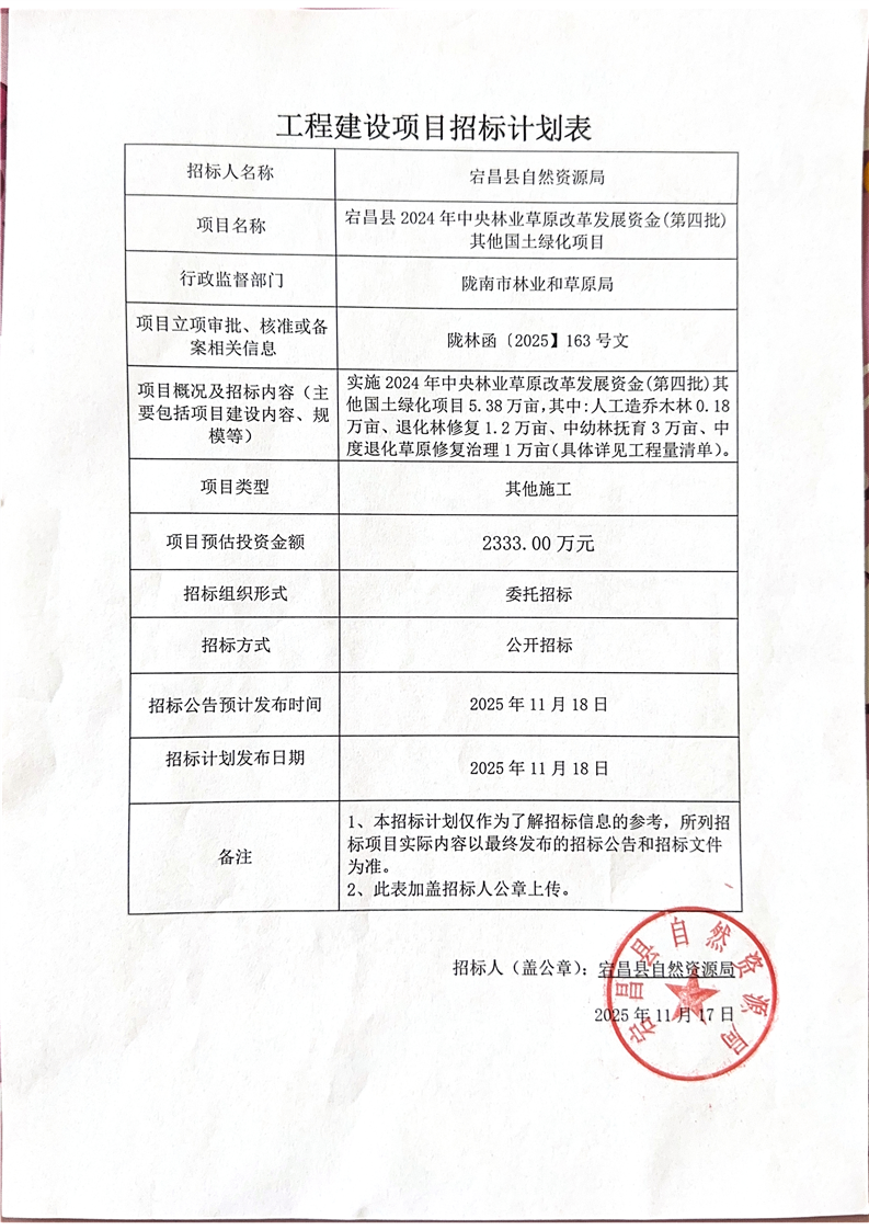 宕昌縣2024年中央林業(yè)草原改革發(fā)展資金(第四批)其他國土綠化項(xiàng)目