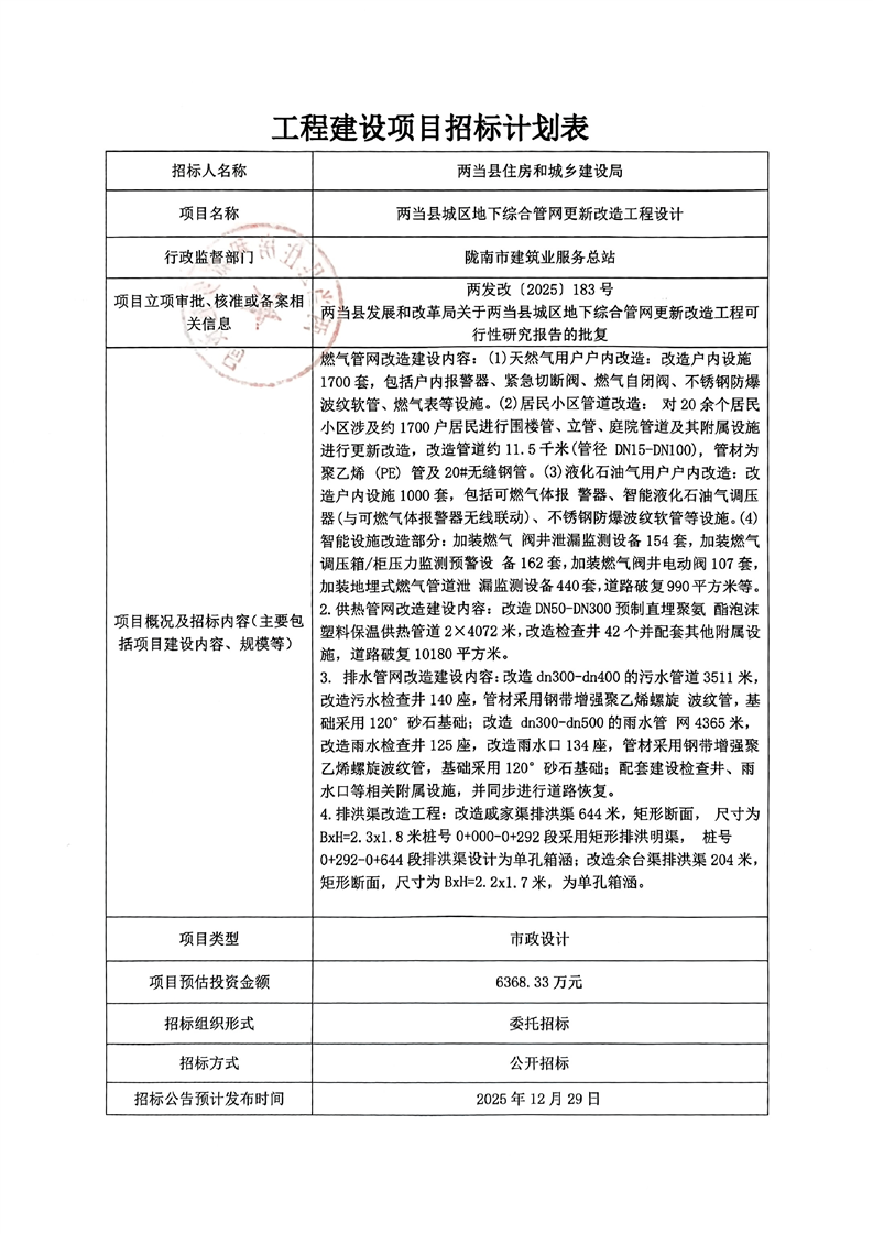 兩當(dāng)縣城區(qū)地下綜合管網(wǎng)更新改造工程設(shè)計