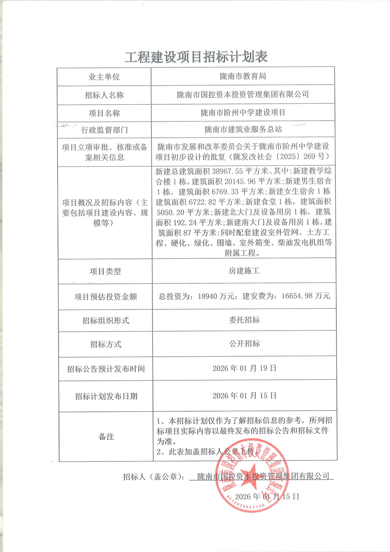 隴南市階州中學建設(shè)項目