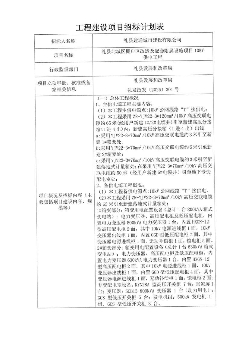 禮縣北城區(qū)棚戶區(qū)改造及配套附屬設(shè)施項(xiàng)目10KV供電工程
