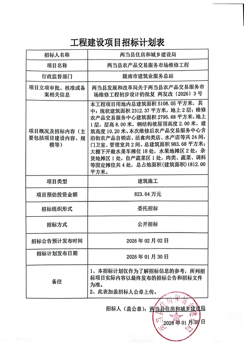 兩當(dāng)縣農(nóng)產(chǎn)品交易服務(wù)市場(chǎng)維修工程