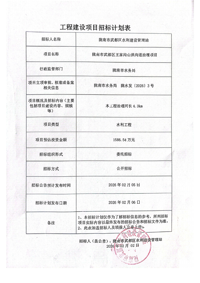 隴南市武都區(qū)王家溝山洪溝道治理項目