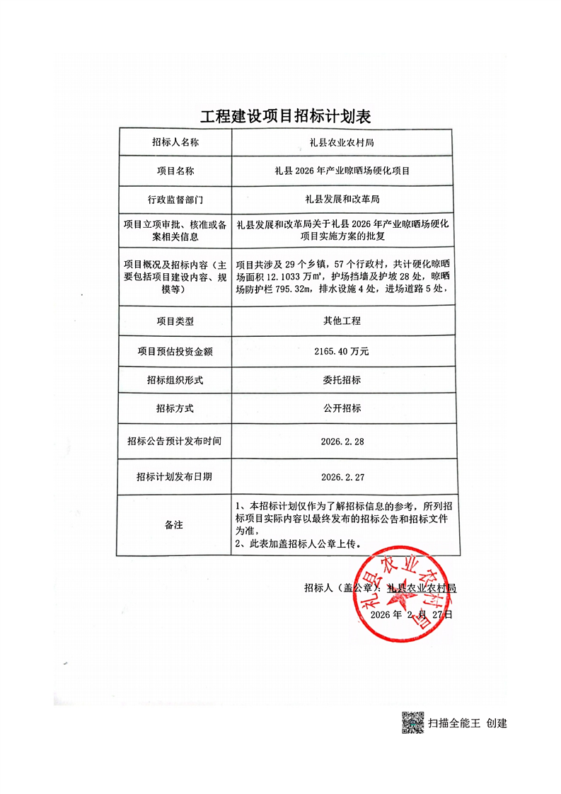 禮縣2026年產(chǎn)業(yè)晾曬場(chǎng)硬化項(xiàng)目