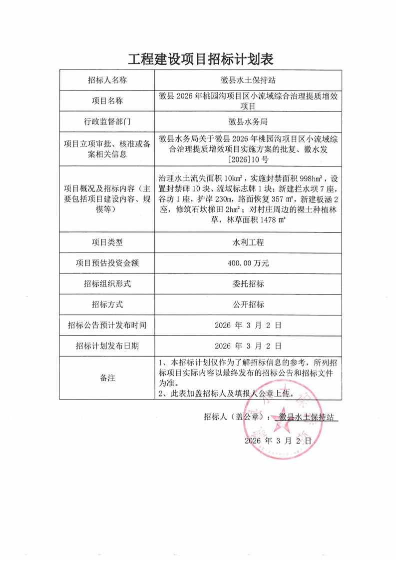 徽縣2026年桃園溝項(xiàng)目區(qū)小流域綜合治理提質(zhì)增效項(xiàng)目