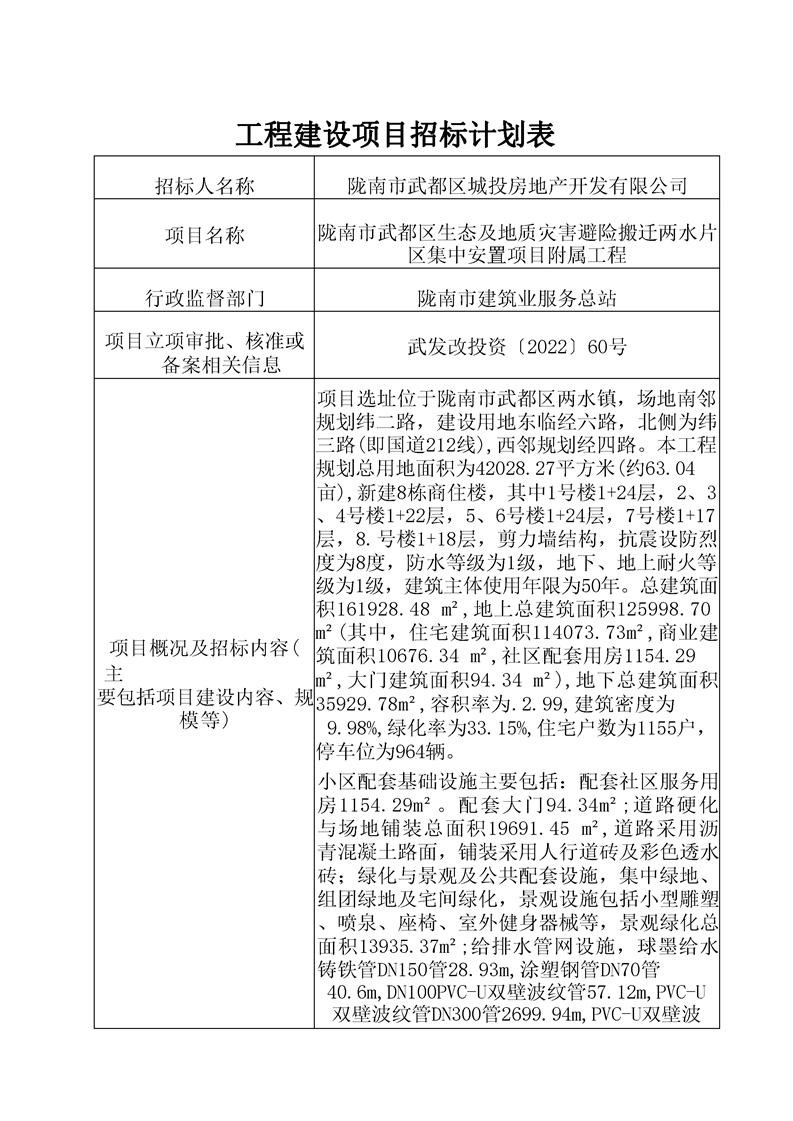 隴南市武都區(qū)生態(tài)及地質(zhì)災(zāi)害避險搬遷兩水片區(qū)集中安置項目附屬工程