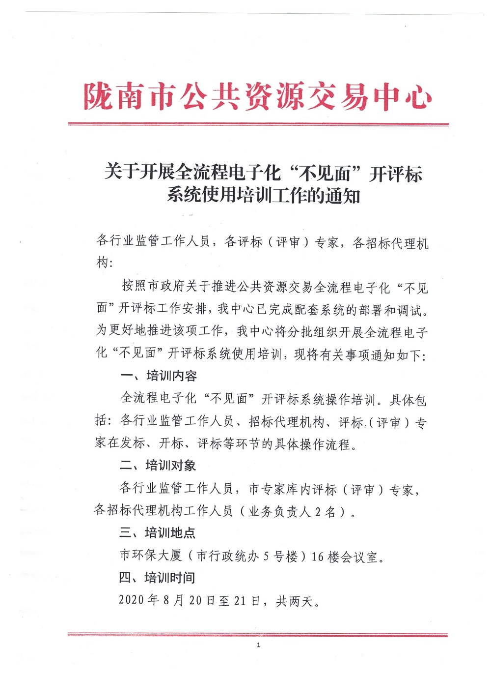 關(guān)于開展全流程電子化“不見面”開評標系統(tǒng)使用培訓(xùn)工作的通知