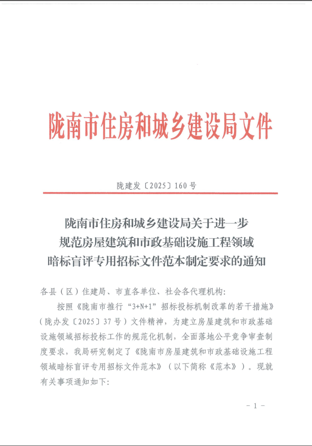 隴南市住房和城鄉(xiāng)建設(shè)局關(guān)于進一步規(guī)范房建筑和市政基礎(chǔ)設(shè)施工程領(lǐng)域暗標盲評專用招標文件范本制定要求的通知