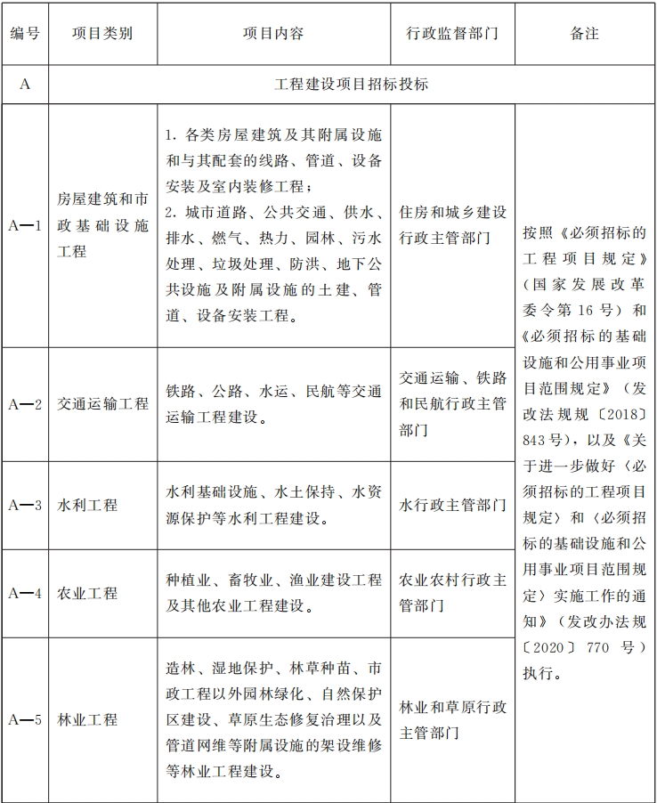 一、《目錄》內(nèi)依法必須招標(biāo)的項(xiàng)目應(yīng)當(dāng)進(jìn)入各級公共資源交易平臺交易,法律、法規(guī)、規(guī)章及國家有關(guān)行業(yè)行政主管部門另有規(guī)定的,從其規(guī)定。